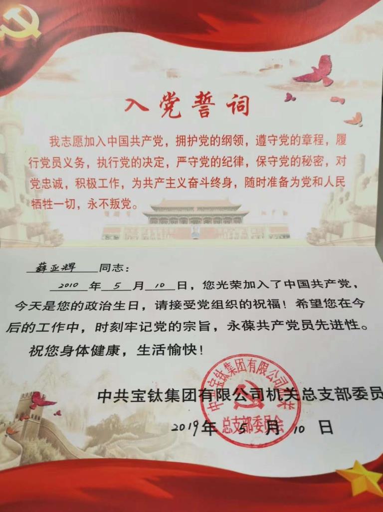 開(kāi)展為黨員過(guò)“政治生日”活動(dòng),是寶鈦集團(tuán)機(jī)關(guān)黨總支深入推進(jìn)“兩學(xué)一做”學(xué)習(xí)常態(tài)化制度化的一項(xiàng)新舉措,通過(guò)讓機(jī)關(guān)黨員始終牢記“第一身份”、明確“第一職責(zé)”,切實(shí)增強(qiáng)黨性觀念和黨員意識(shí),進(jìn)一步增強(qiáng)了黨員的榮譽(yù)感、責(zé)任感、歸屬感,激勵(lì)黨員不忘初心、牢記使命,繼續(xù)為公司深化改革、提高運(yùn)營(yíng)效率貢獻(xiàn)力量。