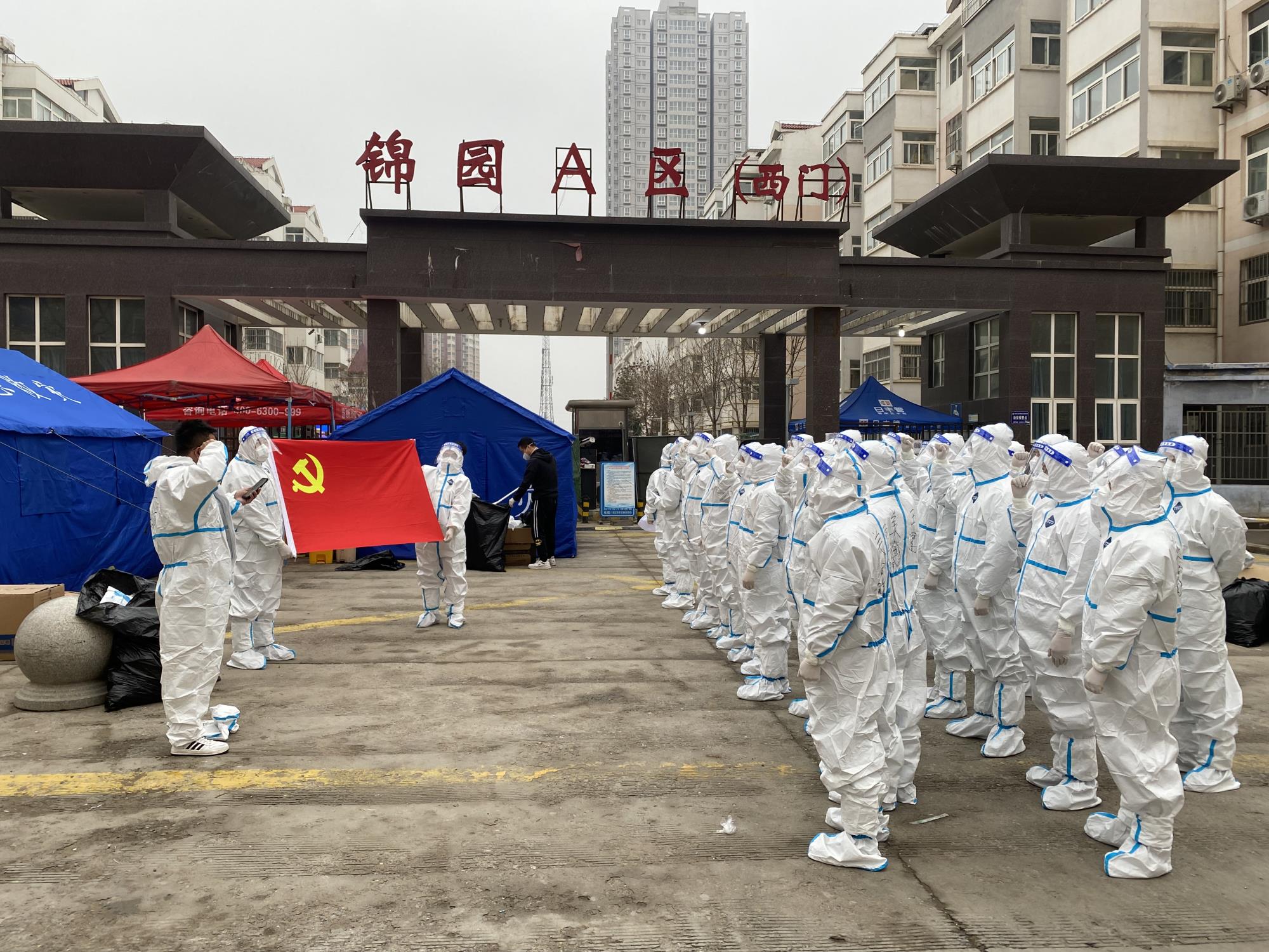 面對(duì)疫情大考,公司黨委和各基層黨組織充分發(fā)揮戰(zhàn)斗堡壘作用,堅(jiān)決做到“黨旗插在最高處、堡壘建在最前沿、黨員沖在最前線”,積極響應(yīng)銅川市疫情防控工作號(hào)召,挑選出政治素質(zhì)高、身體條件好、符合防疫條件的黨員干部、積極分子30名,連夜組建陜西美鑫公司防疫幫扶隊(duì),成立臨時(shí)黨支部,不畏艱險(xiǎn),勇戰(zhàn)“疫”線,筑牢疫情防控“紅色防線”。