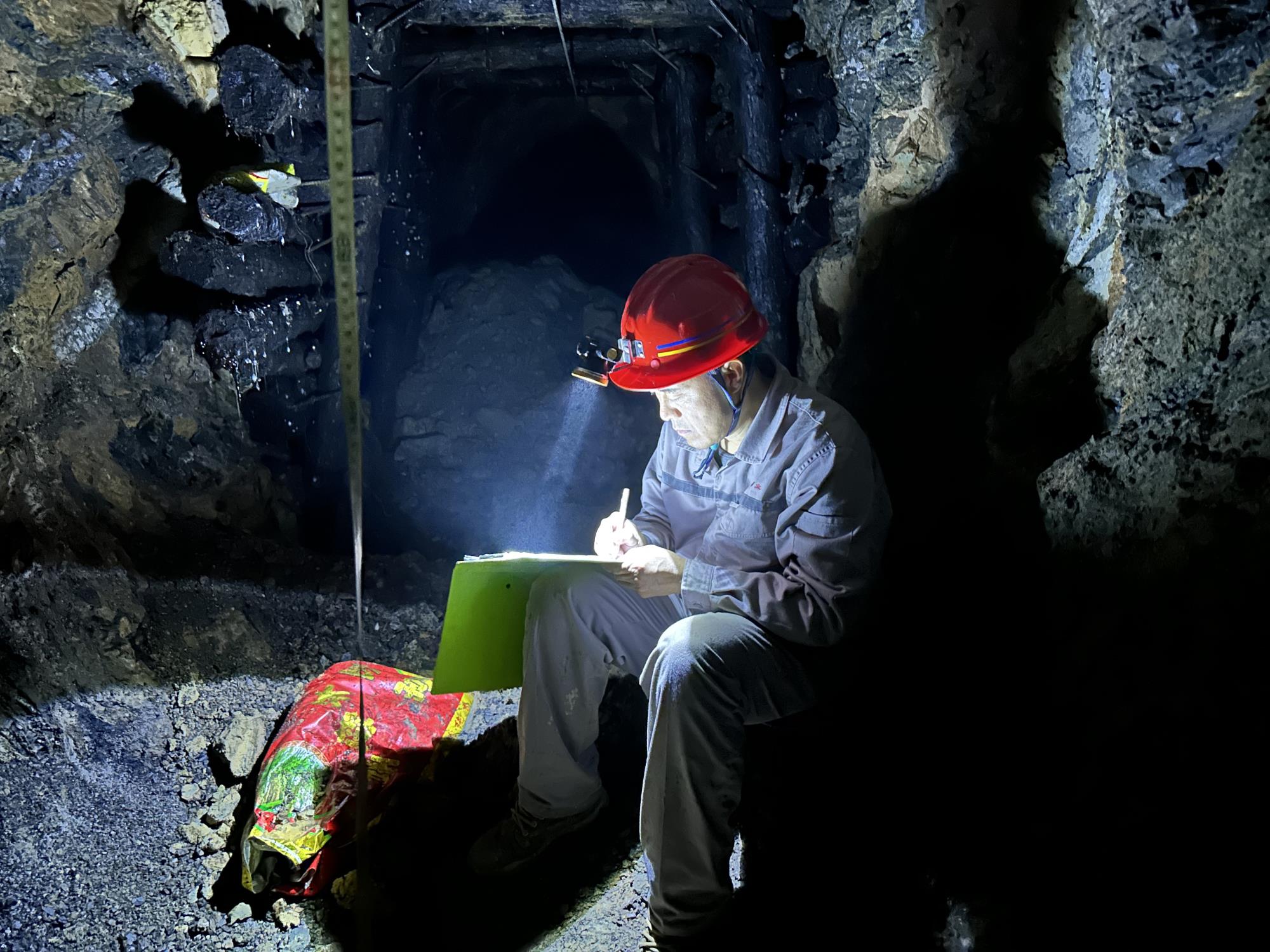 當(dāng)寨子溝礦區(qū)樣品送檢后,坑道成了我的另一個(gè)課堂。師父教我測量各類產(chǎn)狀,教我展點(diǎn)和產(chǎn)狀,教我如何勾畫地質(zhì)界線……水珠從坑道頂板滴落,在礦燈光束里拉出銀線。師父的筆尖在巖壁上游走如活物,筆尖順層理滑動,在圖紙上旋出流暢的曲線?;璋倒饩€下,那墨線竟有了生命般微微搏動——巖石的密碼被解開一道縫隙,礦脈的暖流正滲出石壁。地質(zhì)錘叩擊巖壁的顫音未散,巖石紋層間簌簌剝落的碎屑里,恍有古河道裹挾風(fēng)沙的呼嘯掠過指腹。