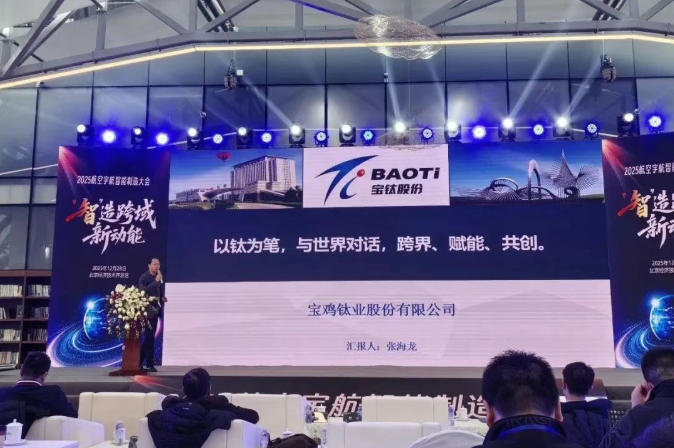 12月28日,2025航空宇航智能制造大會(huì)在北京召開(kāi)。會(huì)議聚焦航空航天智能制造技術(shù)轉(zhuǎn)化,匯聚院士、專(zhuān)家學(xué)者及低空經(jīng)濟(jì)、新能源汽車(chē)等領(lǐng)域領(lǐng)軍企業(yè)代表,共同探討新時(shí)代下中國(guó)航空宇航制造產(chǎn)業(yè)的發(fā)展新路徑。寶雞鈦業(yè)股份有限公司(以下簡(jiǎn)稱(chēng)“寶鈦股份”)總經(jīng)理張海龍應(yīng)邀參會(huì)并作主題報(bào)告。
