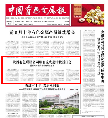 中國有色金屬報(bào):陜西有色所屬公司順利完成赴津救援任務(wù)