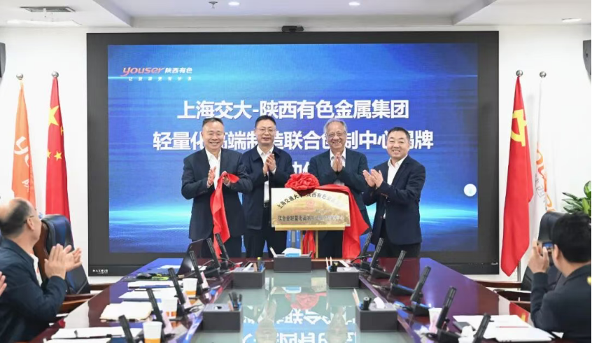 10月10日,上海交大—陜西有色金屬集團輕量化高端制造聯(lián)合創(chuàng)制中心揭牌暨啟動儀式在集團總部舉行。中國工程院院士、上海交大輕合金精密成型國家工程研究中心主任丁文江,陜西有色金屬集團黨委書記、董事長吳群英見證揭牌,上海交大黨委常委、副校長、鎂材料及應(yīng)用工程技術(shù)研究中心主任曾小勤和集團公司黨委委員、副總經(jīng)理黃忠良共同為聯(lián)合創(chuàng)制中心揭牌。