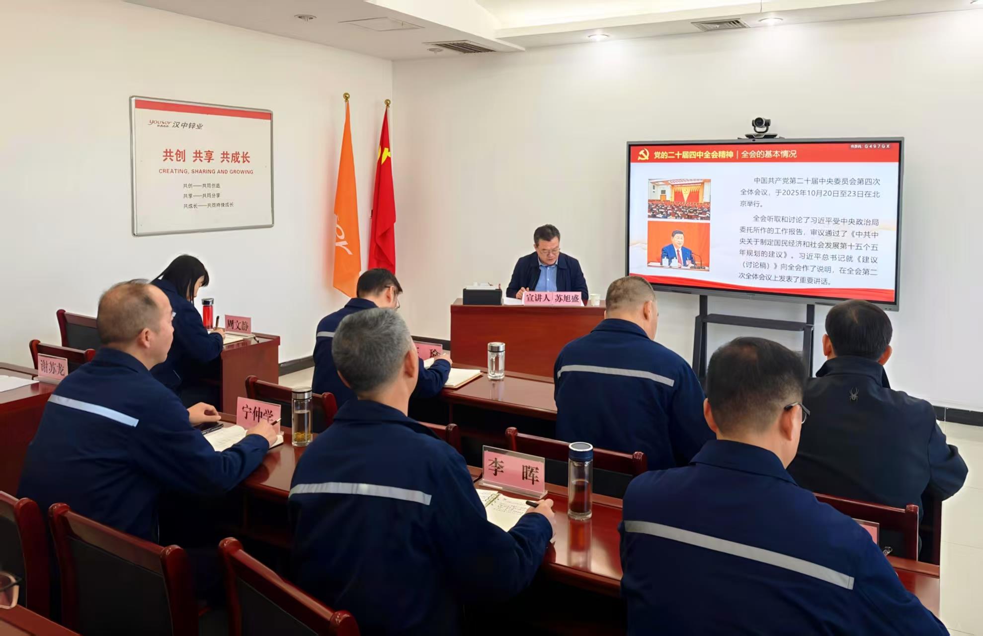 蘇旭盛強調,學習宣傳貫徹全會精神,是當前和今后一個時期的重大政治任務,要準確把握全會精神的核心要義,深刻認識“十五五”時期經濟社會發(fā)展的重大意義,全面對標黨中央部署要求,扎實推進全會精神的學習貫徹、“十五五”規(guī)劃編制和當前各項重點工作。蘇旭盛要求,一要把學習黨的二十屆四中全會精神轉化為推動各項工作的強大動力,切實推動漢中鋅業(yè)高質量發(fā)展;二要抓實年末歲尾安全生產,確保全面完成年度目標任務;三要科學謀劃“十五五”規(guī)劃與2026年工作,扎實推進重點工作落地見效。