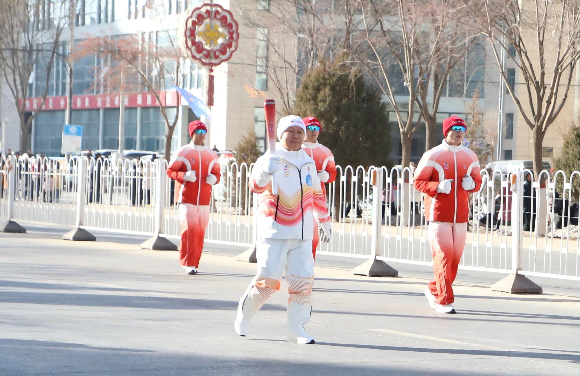 “陜色新材、助力冬運循環(huán)經濟、爭創(chuàng)第一……”上午10時許,伴隨著激昂的加油吶喊聲,?;⒚魃碇鹁媸种品瑥牡?4棒火炬手手中鄭重接過火炬,在6名護衛(wèi)手的護持下,高舉燃燒的火炬健步奔跑,將圣火順利傳遞給第56棒火炬手,圓滿完成此次傳遞任務。