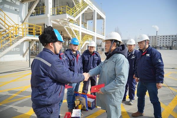 在天宏瑞科生產(chǎn)現(xiàn)場(chǎng),檢查組實(shí)地查看二期項(xiàng)目建設(shè)進(jìn)度,檢查春節(jié)及兩會(huì)期間運(yùn)行保障、安全環(huán)保管理、信訪維穩(wěn)、全年生產(chǎn)經(jīng)營(yíng)重點(diǎn)工作安排、重大經(jīng)營(yíng)風(fēng)險(xiǎn)防控、執(zhí)紀(jì)監(jiān)督等相關(guān)信息。檢查期間,李金濤慰問(wèn)了困難黨員和困難職工,與他們親切交談,深入了解工作生活近況。