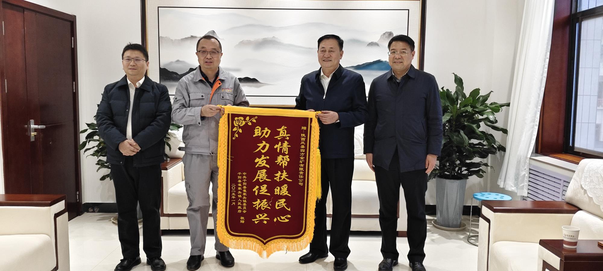 1月7日,寶雞市千陽(yáng)縣縣委常委、副縣長(zhǎng)何紅軍,副縣長(zhǎng)李弦一行到黃金集團(tuán)四方金礦座談交流,深化政企合作。千陽(yáng)縣領(lǐng)導(dǎo)對(duì)四方金礦駐村幫扶工作成效給予高度肯定,向公司贈(zèng)予了“真情幫扶暖民心 助力發(fā)展促振興”錦旗。