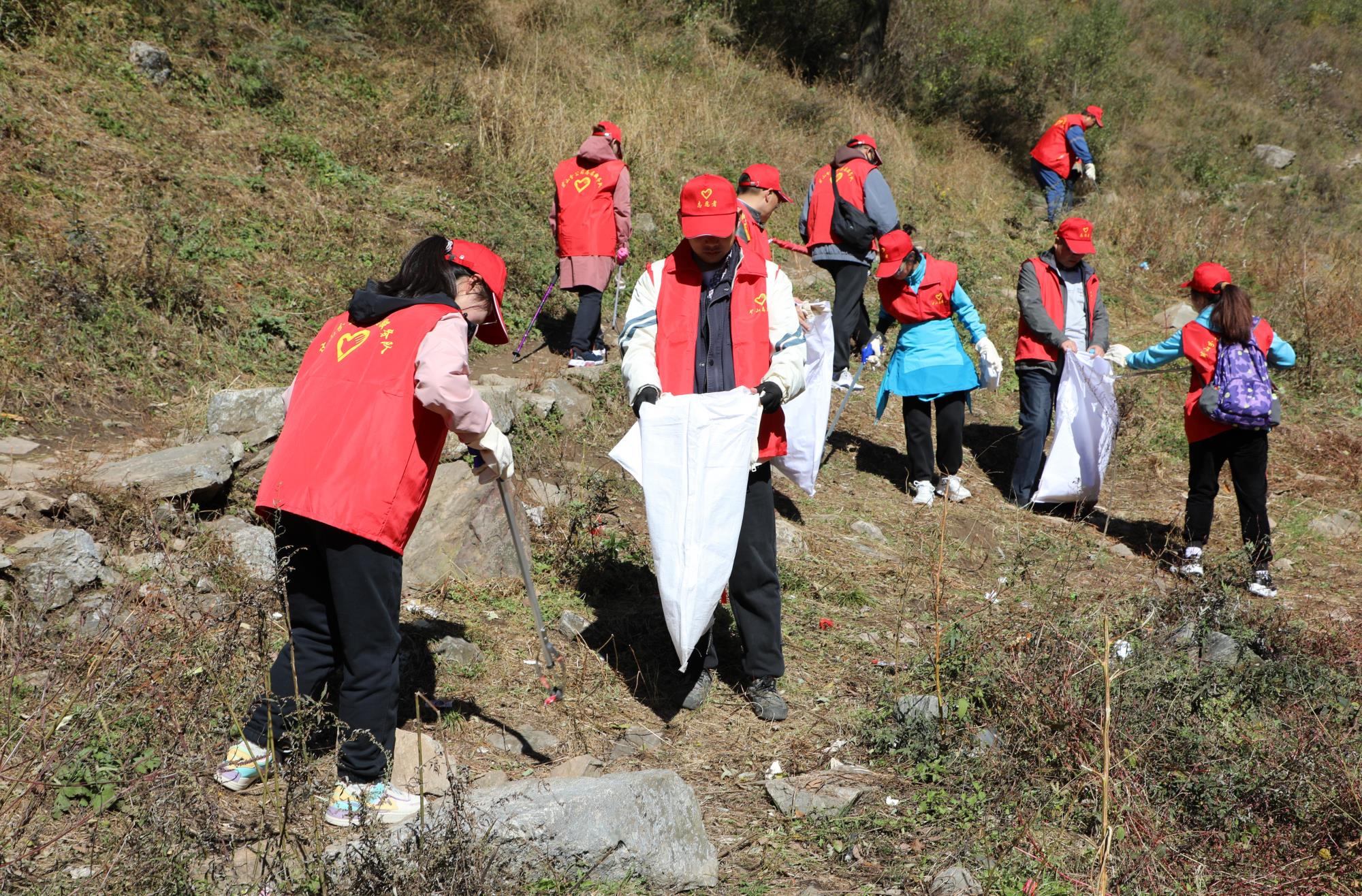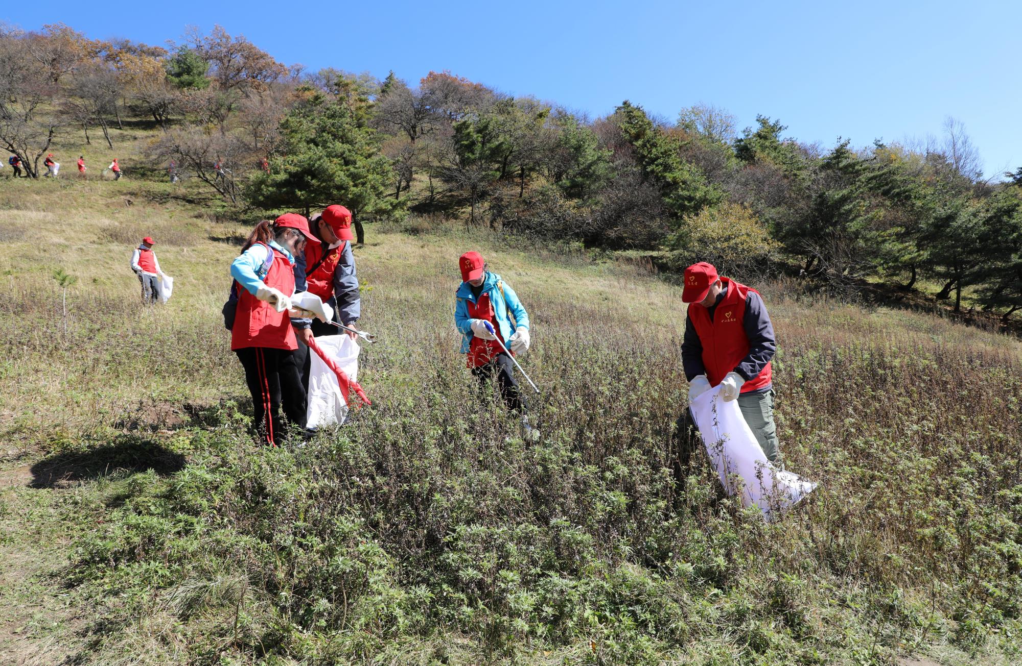 當(dāng)日,陽光正好,志愿者們身著醒目的紅色馬甲,早早匯聚于華陽草甸。他們士氣高昂,以飽滿的熱情和強(qiáng)烈的責(zé)任感,投入到這場(chǎng)清山行動(dòng)中。手中的垃圾袋和夾子成為了他們的“環(huán)保利劍”,草叢中、山坡上、小徑邊,垃圾無所遁形,小到煙頭,大到食品包裝,都被一一清理,華陽草甸重?zé)崈襞c美麗。