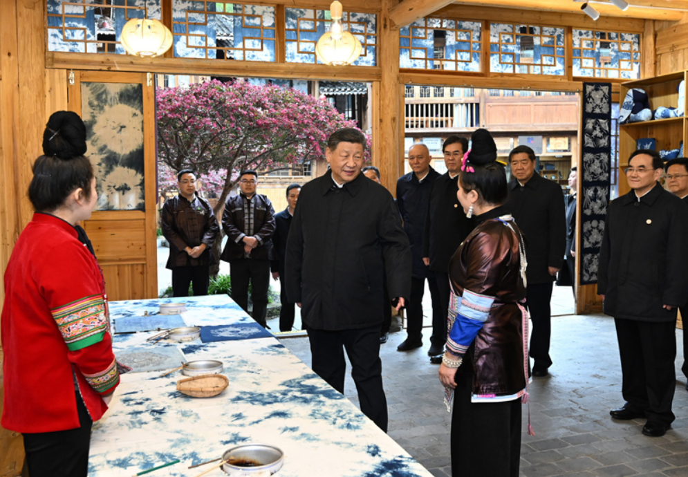 這是17日下午,習(xí)近平在黔東南州黎平縣肇興侗寨侗鄉(xiāng)特色產(chǎn)業(yè)基地考察。