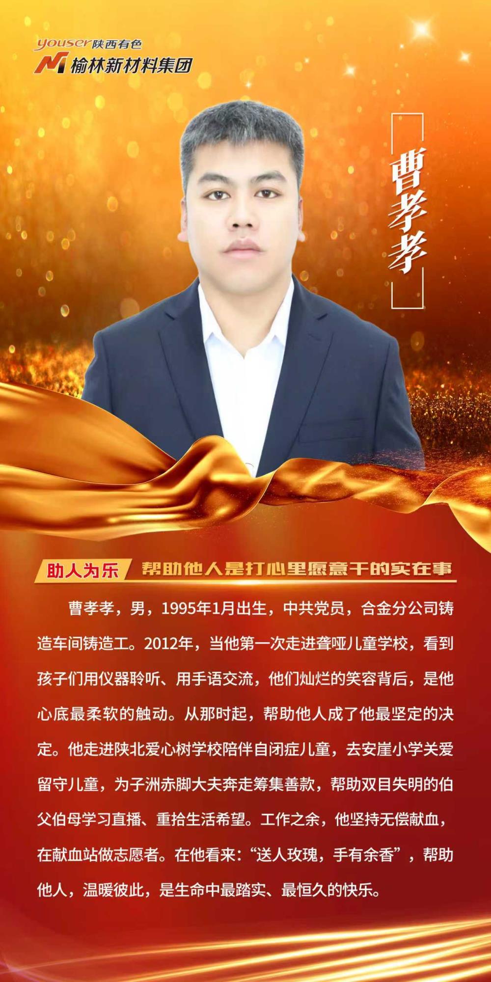 發(fā)布儀式上,榆林新材料集團(tuán)合金分公司鑄造車間鑄造工曹孝孝被授予“助人為樂好人”;鋁業(yè)分公司凈化供料車間檢修電工吳俊龍被授予“敬業(yè)奉獻(xiàn)好人”;鋁業(yè)分公司電解三車間多功能天車工雍樂被授予“孝老愛親好人”;鋁業(yè)分公司供電車間高壓運(yùn)行工段秀麗被授予“自強(qiáng)勵(lì)志好人”。