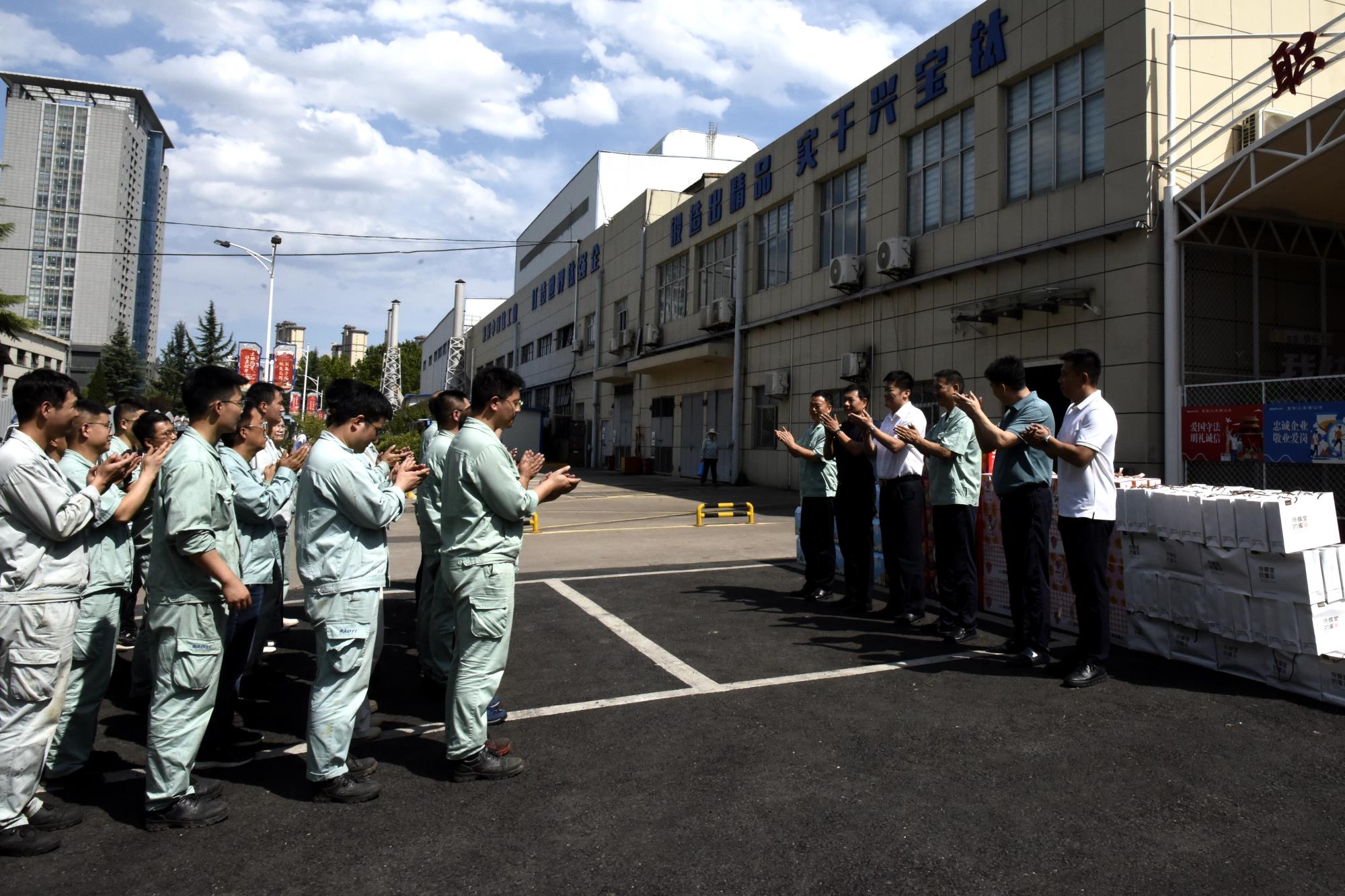 高溫送清涼,點滴沁人心。8月19日下午,陜西有色金屬集團(tuán)黨委副書記、董事、工會主席王小慶一行到寶鈦集團(tuán)開展“送清涼”慰問活動,為奮戰(zhàn)在高溫一線的職工送去關(guān)懷與清涼。寶鈦集團(tuán)領(lǐng)導(dǎo)王儉、賀治民及相關(guān)人員一同慰問。